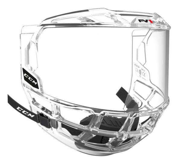 FV1 kokokasvovisiiri on rakennettu kestämään iskuja ja maksimoimaan ilmavirtausta, jotta näkyvyys kiekkoon paranee. Lisäksi visiiri tarjoaa lisää mukavuutta tiiviisti istuvan vaahtomuovisen leukakupin ansiosta.