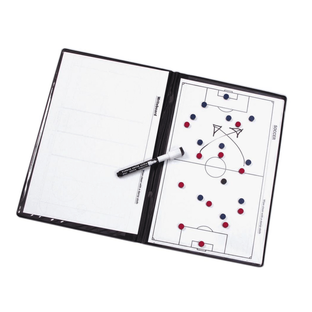 Select taktiikkataulu on kätevä apuväline pelitaktiikan hiomisessa pukuhuoneessa tai kentän laidalla useampiin eri lajeihin. Mukana 11 punaista ja 11 sinistä magneettia, pelivälineenä toimii yksi musta magneetti. Setissä myös kuivatussi ja pyyhin. Kansion koko A4.