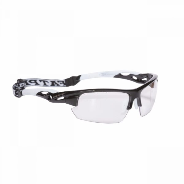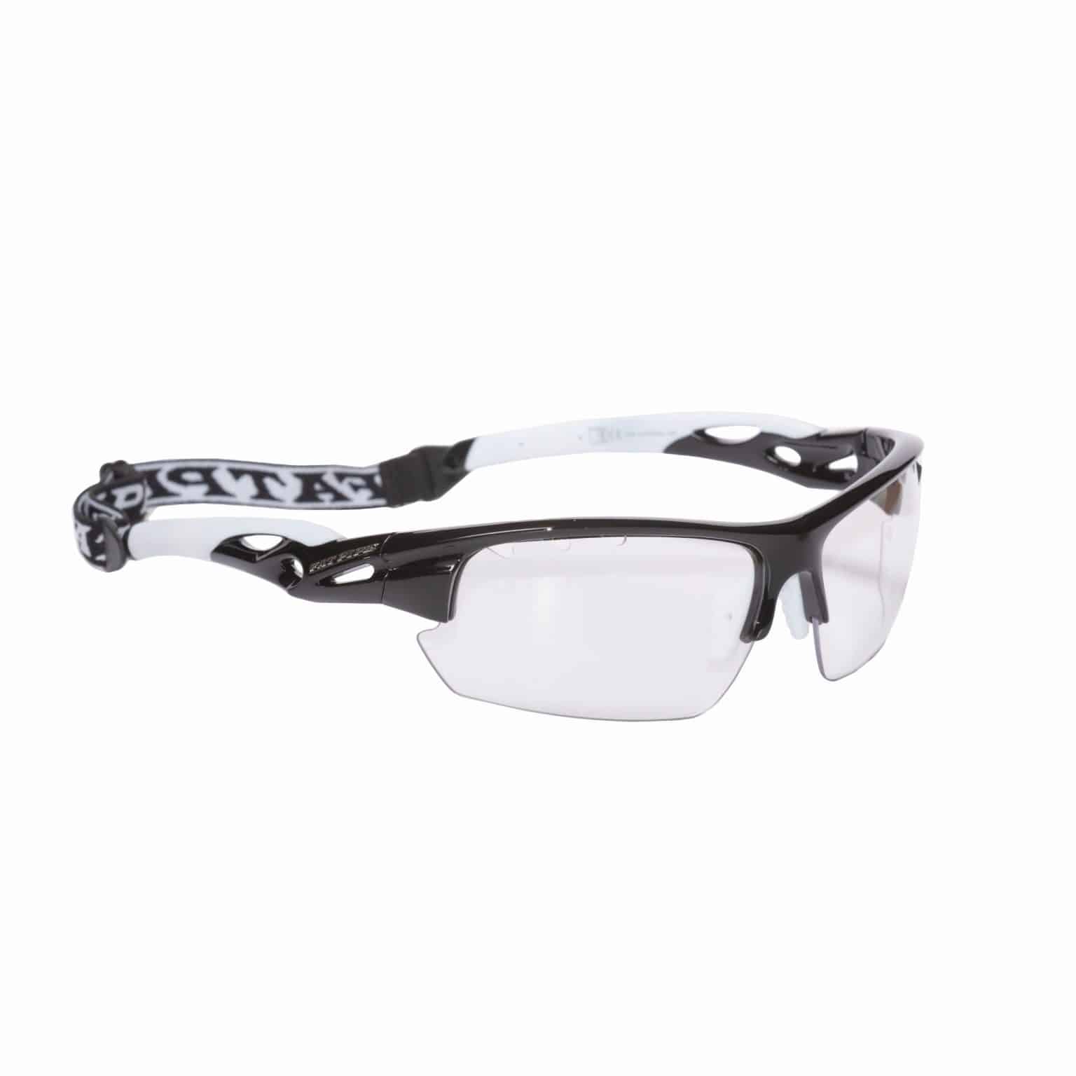 Suojalasit salibandyyn, säädettävä nauha, säädettävät nenätuet, puhdistusliina, kestävä suojakotelo säilytykseen.